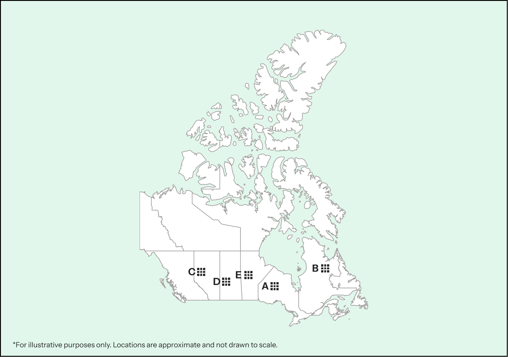 Ontario(A), Quebec(B), Alberta (C), Saskatchewan (D), Manitoba (E)