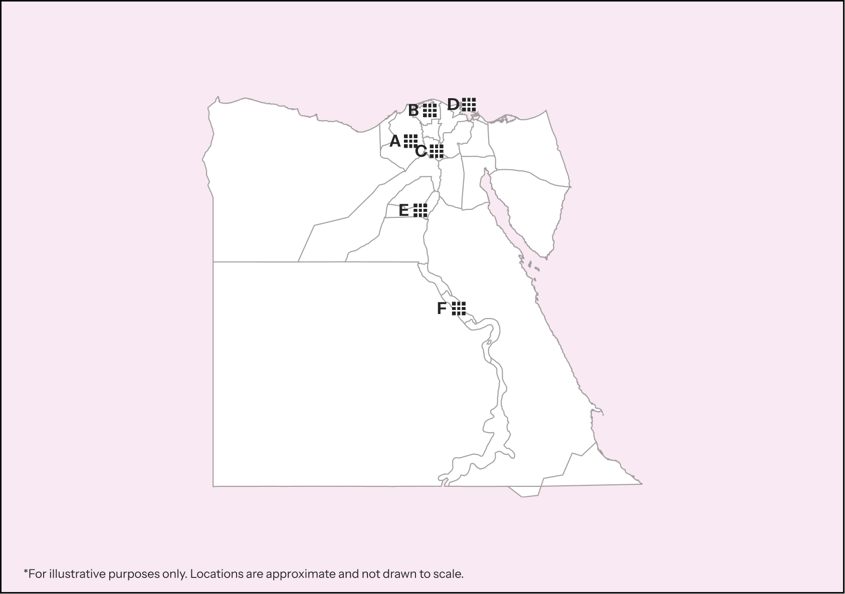 Beheira(A), Kafr El-Sheikh(B), Monufia(C), Damietta (D), Beni Suef (E), Sohag (F)